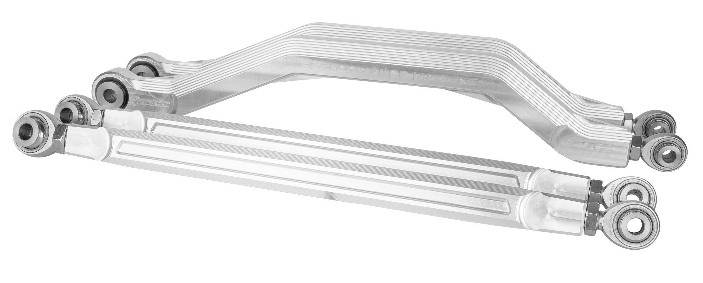 Performance Machine Off-Road Radius Rods are made from 6061-T6 billet aluminum and feature QA1 Spherical Bearing rod ends and 303 stainless steel precision machined misalignment spacers. Replacing the stock steel radius rods with PM billet aluminum radius rods add strength, and provides for full adjustment compared to the stock units. In addition, the Performance Machine Off-Road High Clearance Radius Rods’ design increases ground clearance and off-road appeal. Available in Raw Machined and Black Contrast Cut finishes complete with PM logo for added style. Proudly made in the USA.